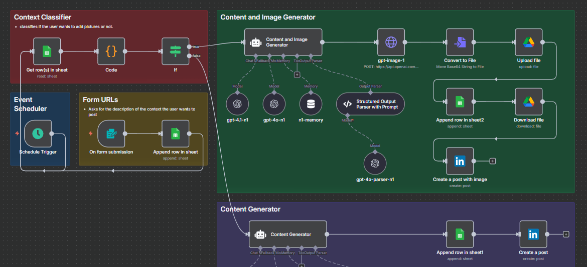 Workflow automation for AI-generated social media content, including scheduling and publishing.